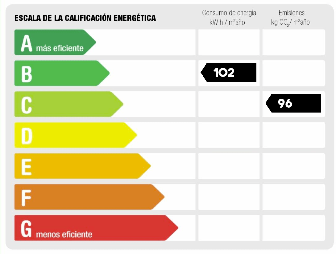 - Consumo de energía (kwh/m2 año): 102.