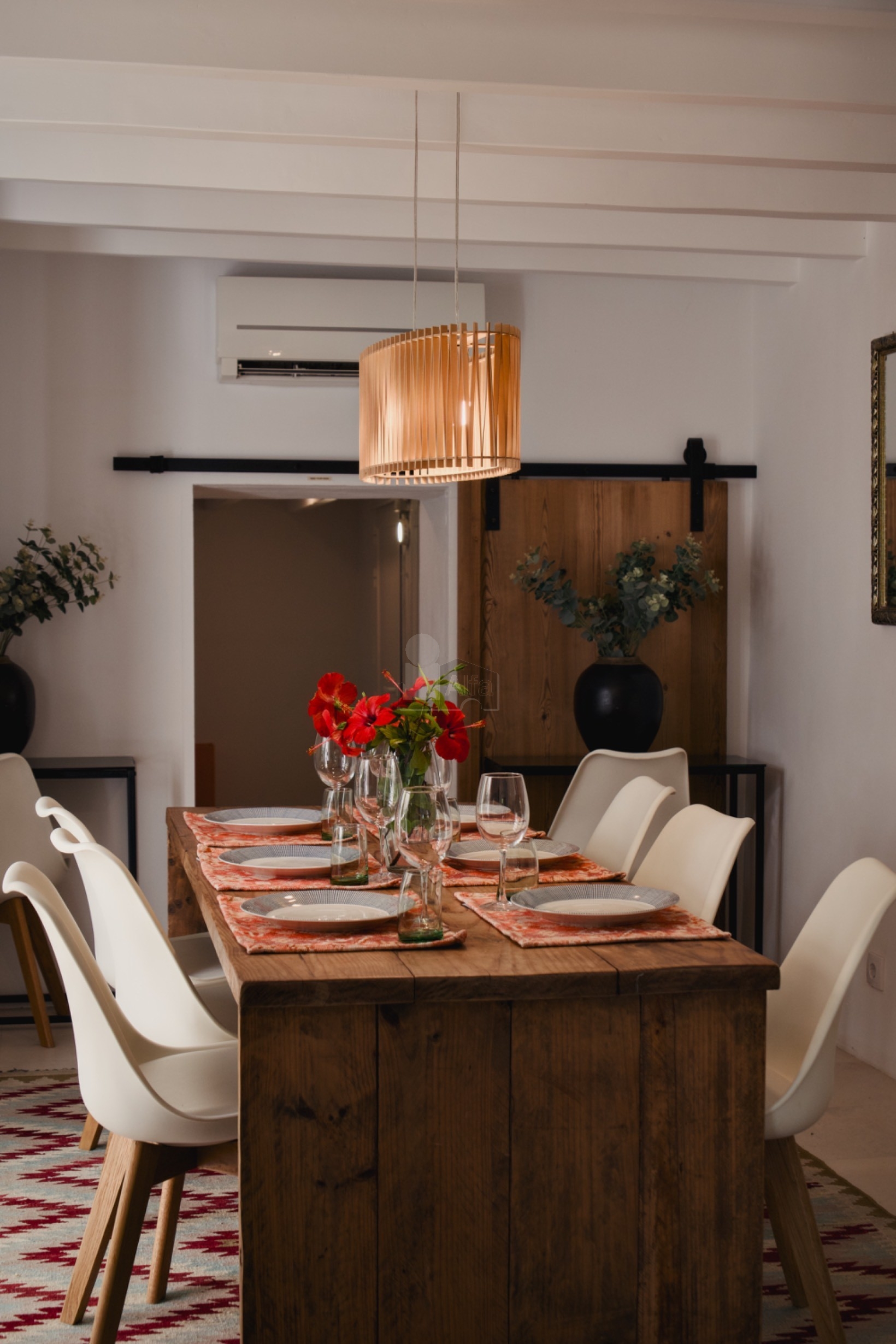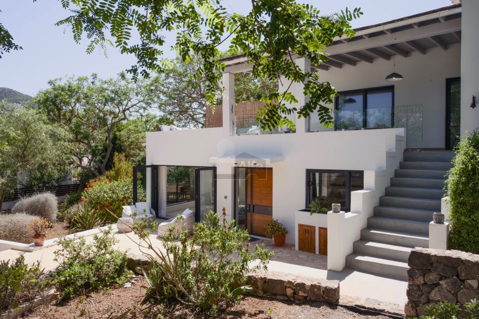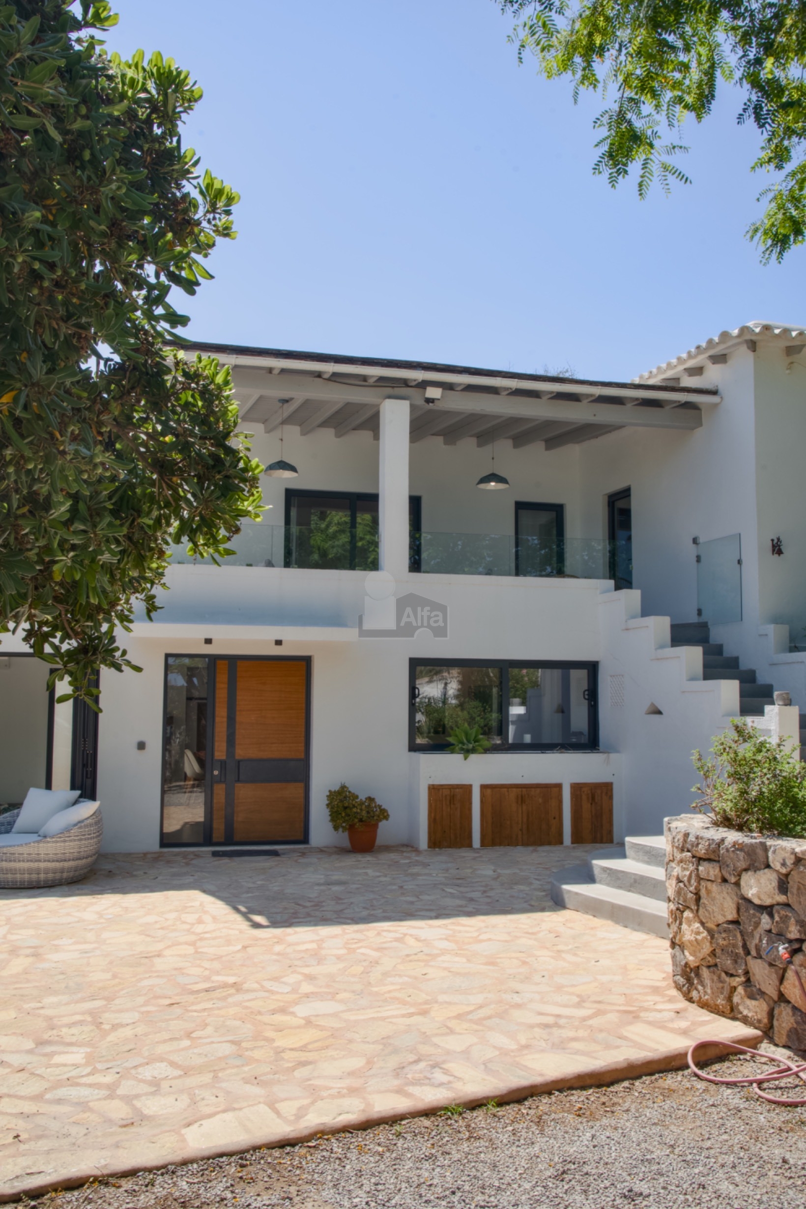 La casa ofrece un entorno tranquilo y familiar, con una cuidada arquitectura de estilo ibicenco contemporáneo. Dispone de 4 amplios dormitorios, ideales para una familia, así como zonas exteriores pensadas para disfrutar del clima mediterráneo durante todo el año.